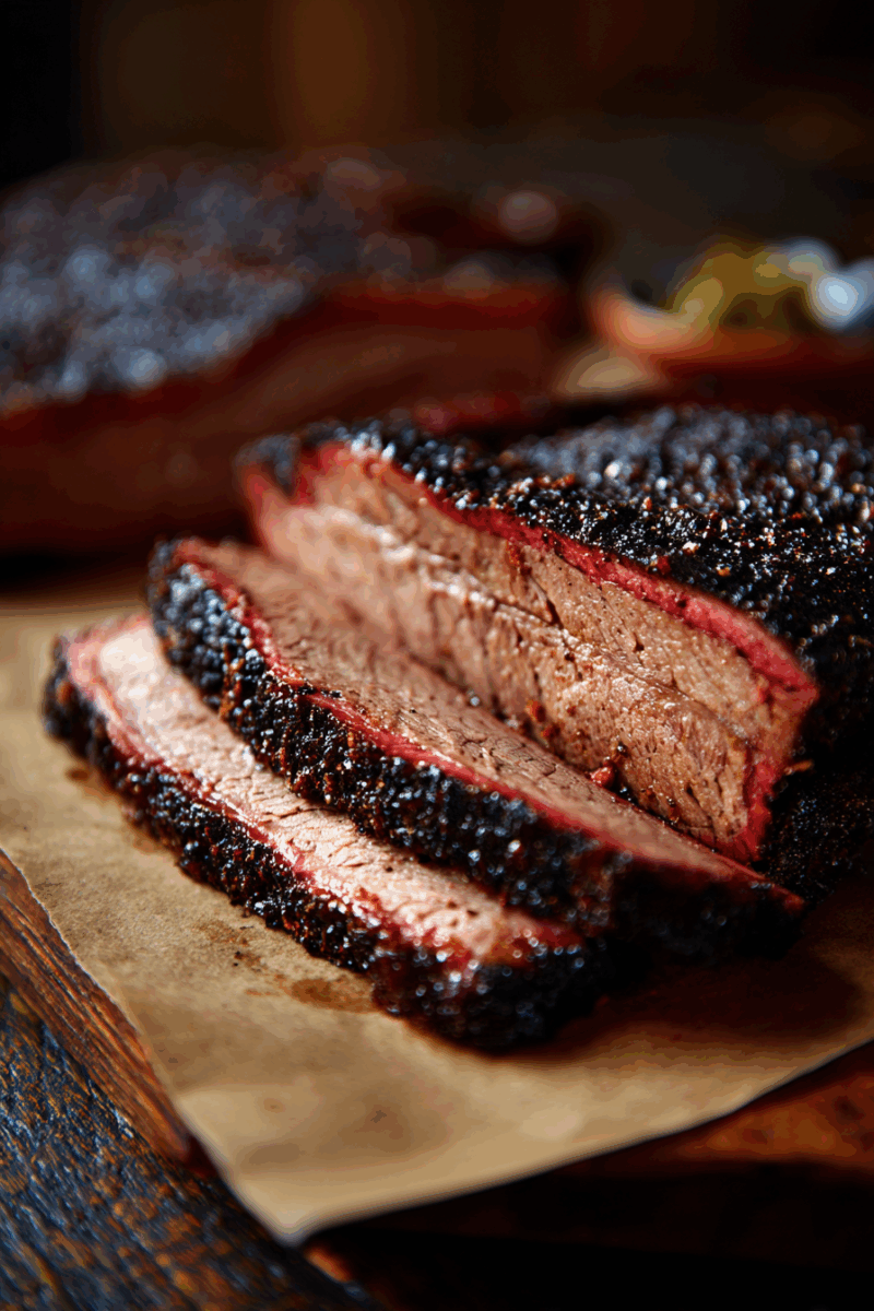 The brisket comes out so tender you can cut it with a plastic fork, with a smoke ring that penetrates deep into the meat and creates layers of flavor that build with every bite.