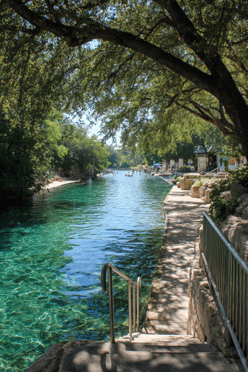 The pool stretches nearly 1,000 feet long, giving you plenty of space to swim laps, float leisurely, or just wade in the shallows while soaking up that famous Texas sunshine.