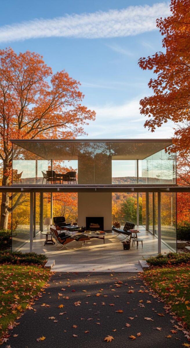 It’s exactly what it sounds like—a house made almost entirely of glass, set in this sprawling, beautiful park.