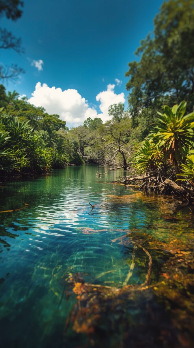 The water is so clear you can see every fish, every bit of underwater grass.