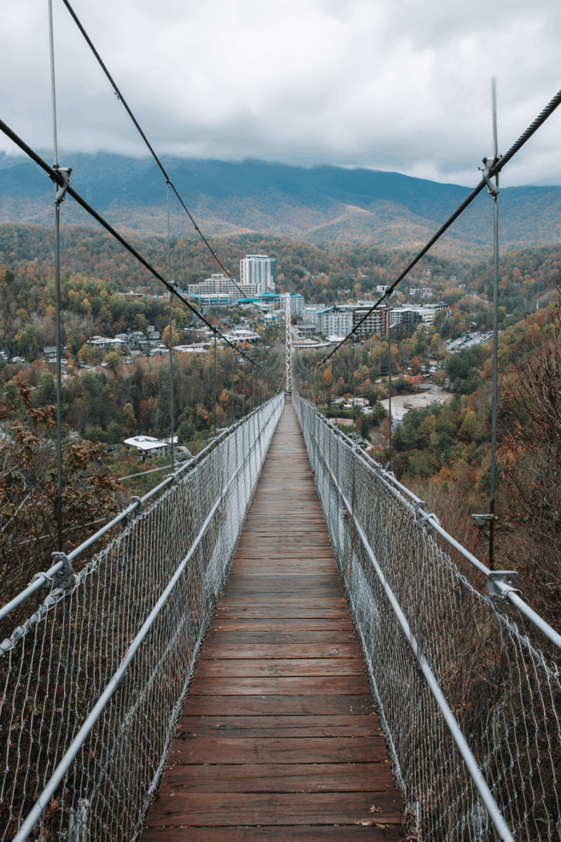 The observation deck at the bridge’s center provides you with 360-degree views of the Great Smoky Mountains, including clear sightlines to Mount LeConte, Clingmans Dome, and the sprawling valley that contains Gatlinburg.