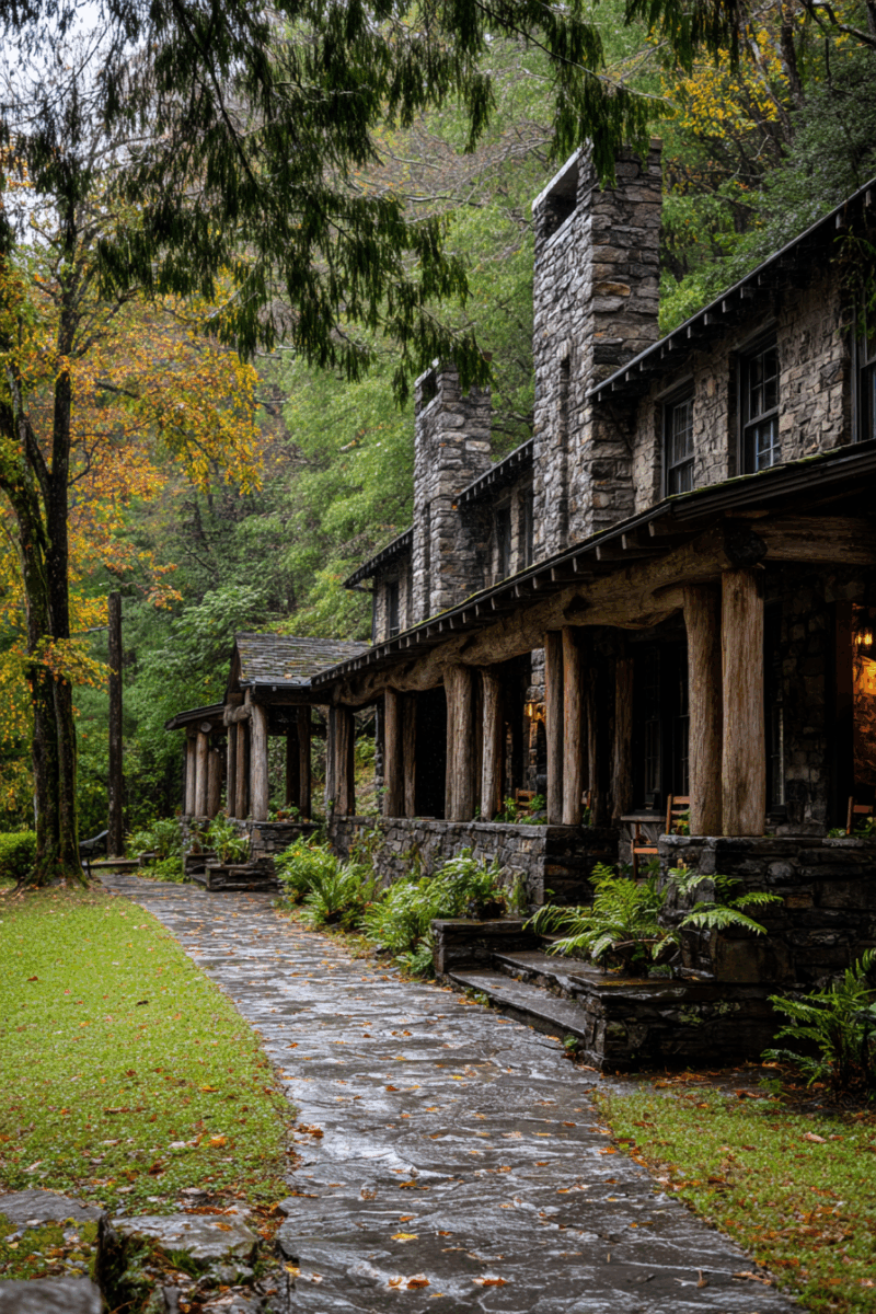 The Appalachian Clubhouse stands as the centerpiece of the district, a rustic but elegant building where guests gathered for meals, social events, and to plan their mountain adventures in the early 1900s.
