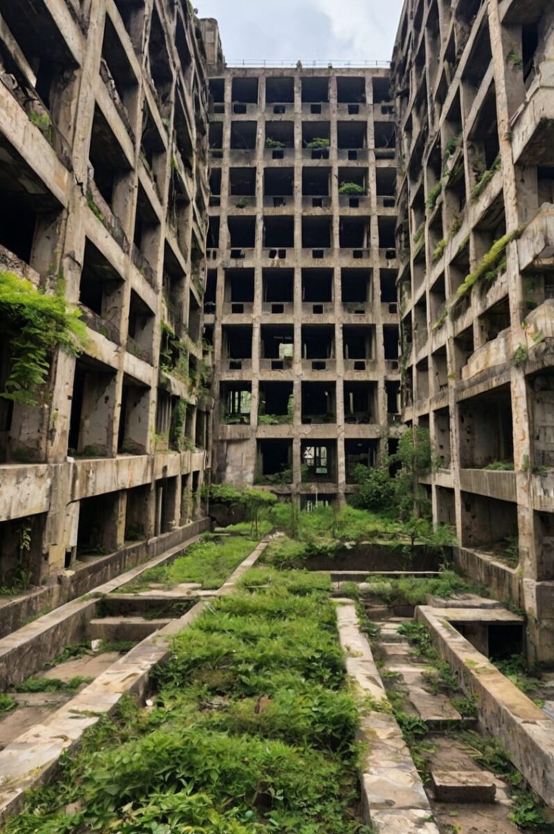 The islandโs infrastructure remains largely intact, including schools, hospitals, shops, and even a rooftop garden where residents once grew vegetables in this urban jungle surrounded by ocean.
