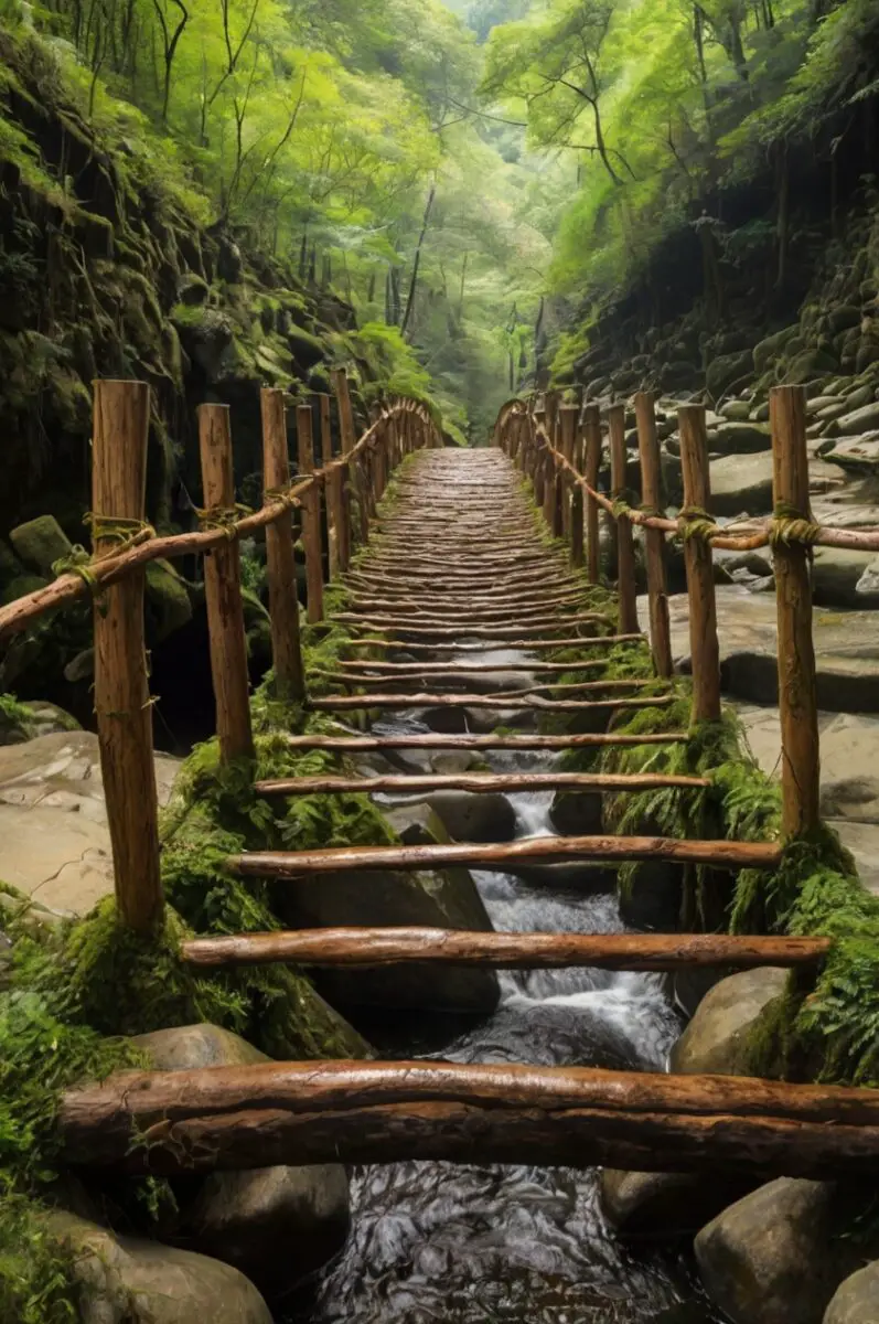 These bridges, reconstructed annually using traditional techniques, consist entirely of mountain vines woven together without nails or modern hardware, swaying dramatically with every step.