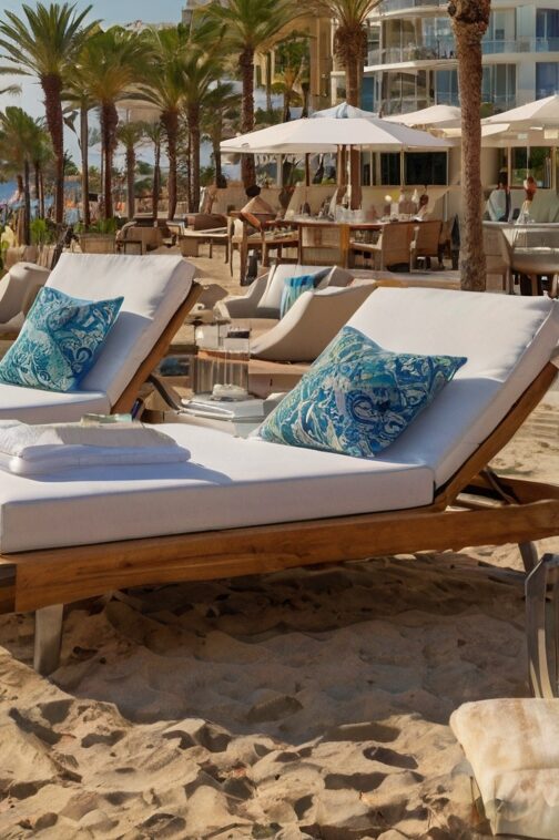 Lounge areas feature DJ sets and poolside parties that blur the line between beach day and nightclub experience.