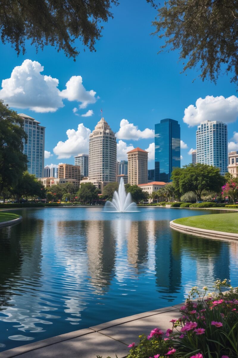 Lake Eola Park With The Downtown Skyline