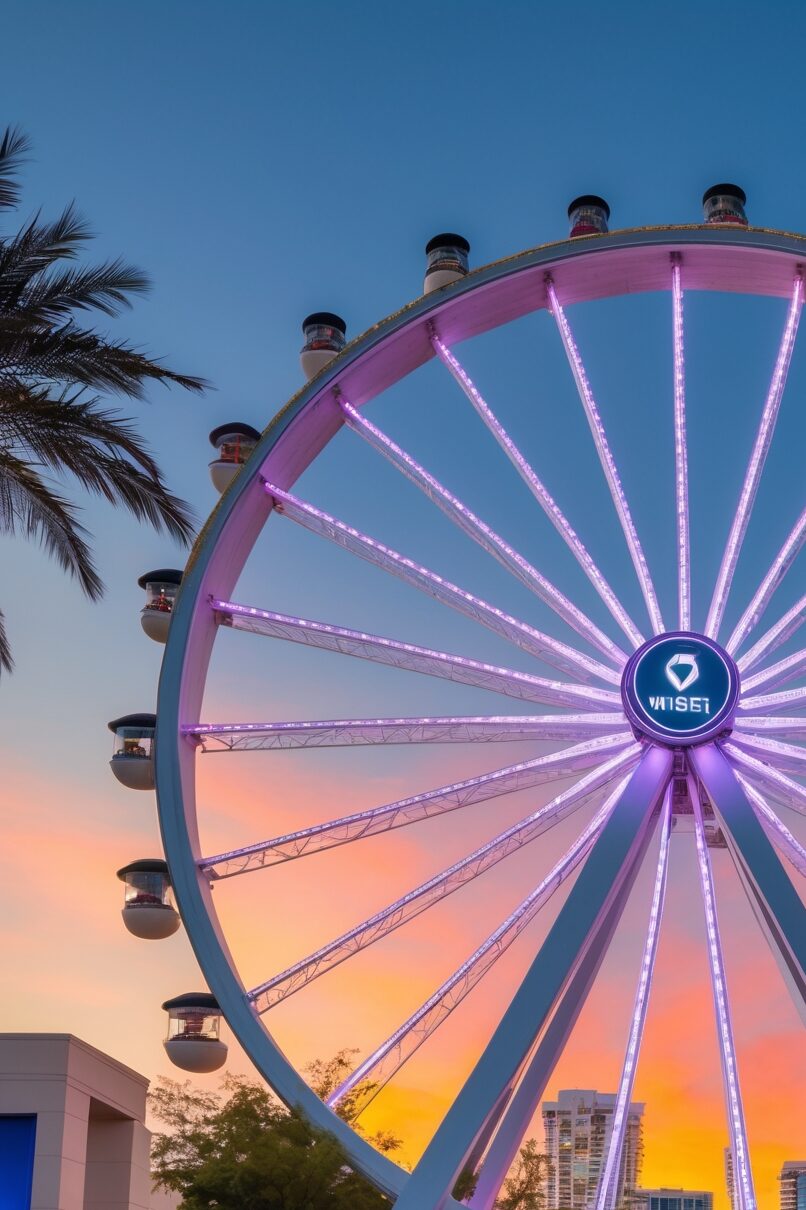 At night, the wheel lights up in different colors, creating this dreamy, neon vibe that’s perfect for content.