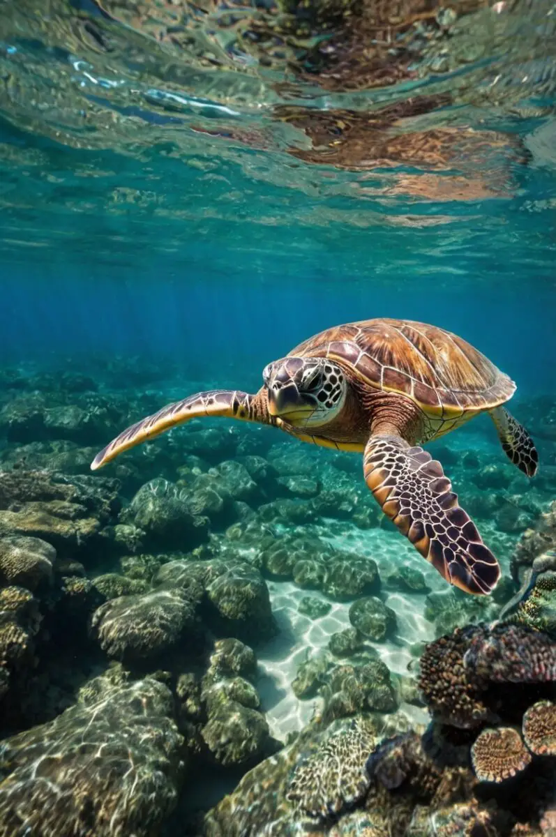 Sea turtles swim so close to shore that you can snorkel with them in just 10 feet of water, with green and hawksbill turtles so accustomed to humans they often swim within arm’s reach.