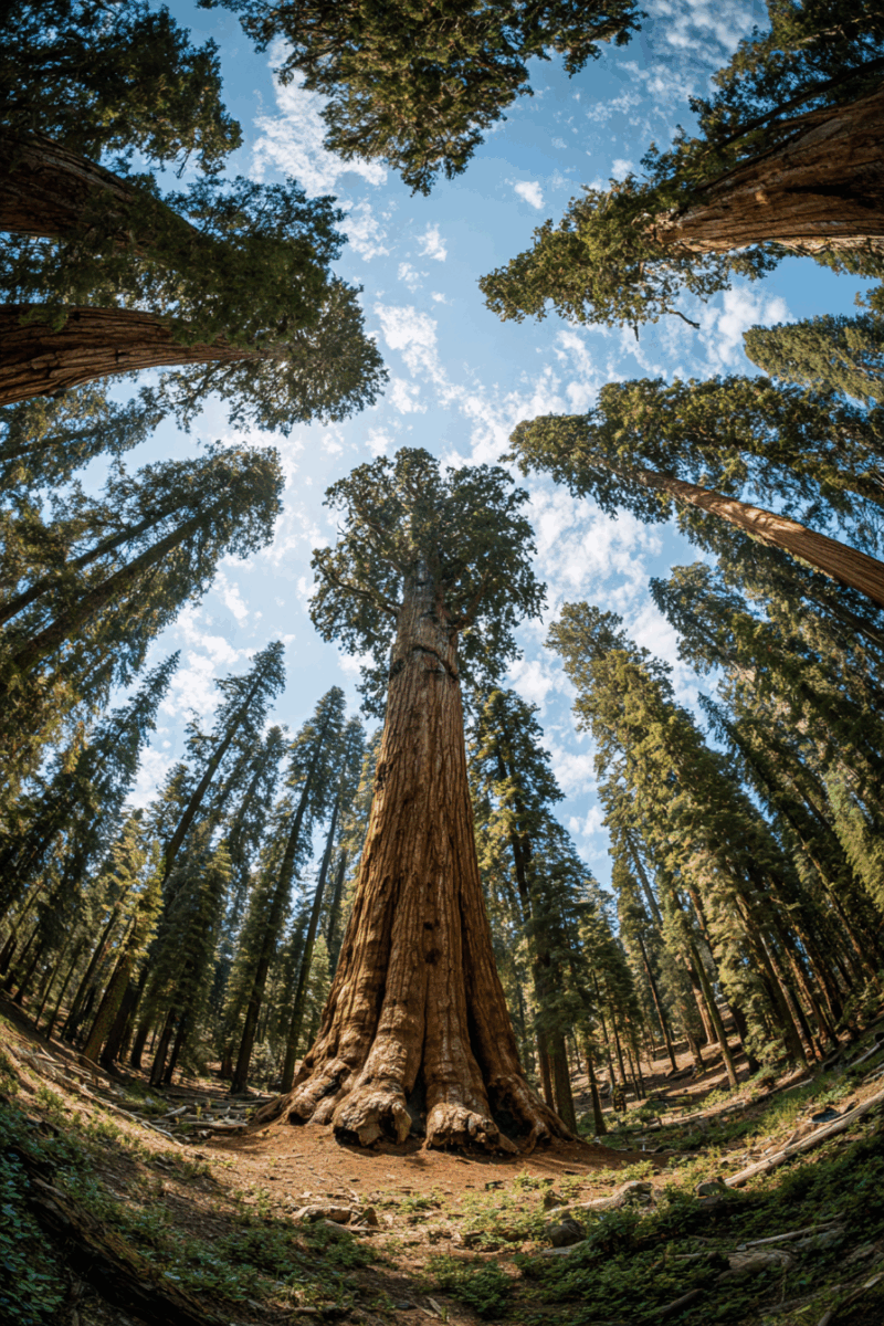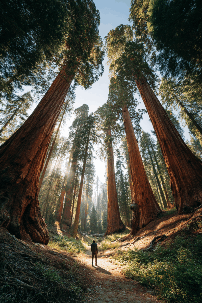 The General Sherman Tree stands as the undisputed king of this forest, measuring 275 feet tall with a base diameter of over 30 feet.