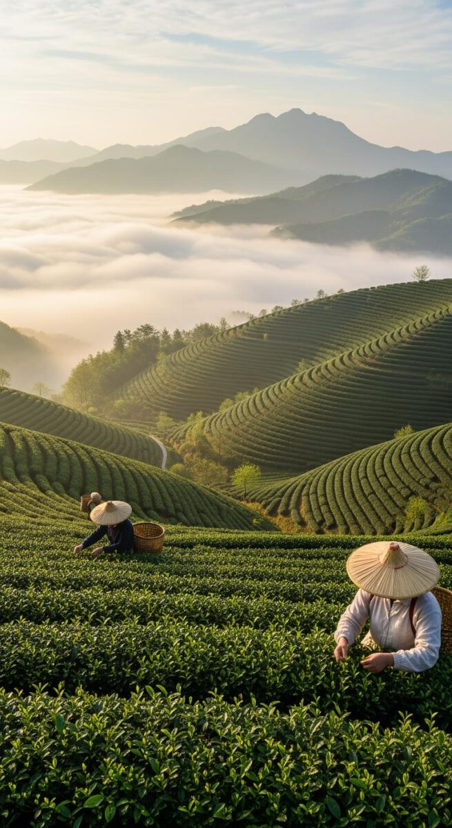 The high altitude and frequent mist create perfect conditions for tea cultivation.