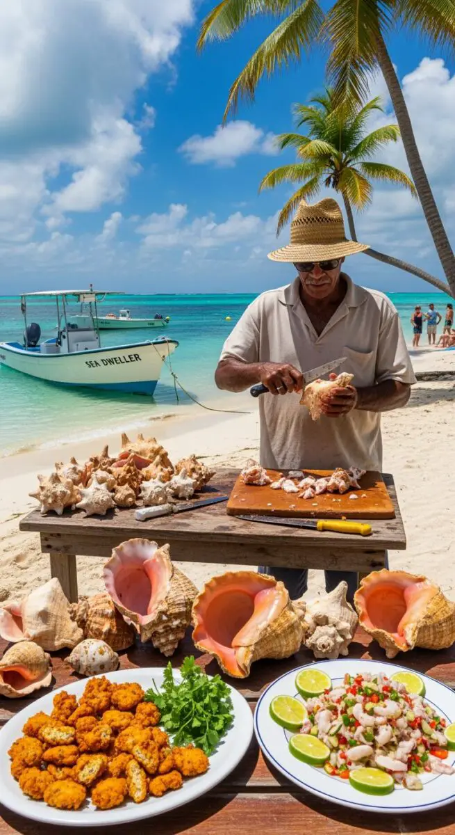 Locals prepare it right in front of you, dicing up raw conch with tomatoes, peppers, onions, and a squeeze of lime.