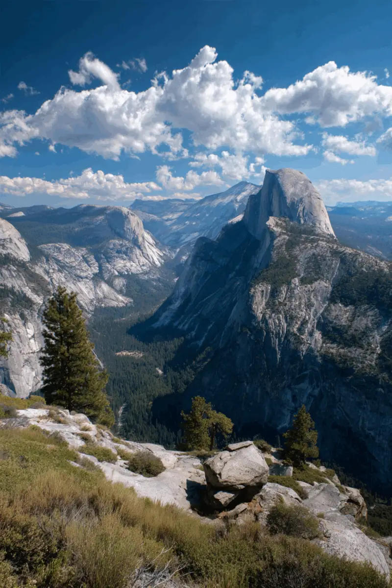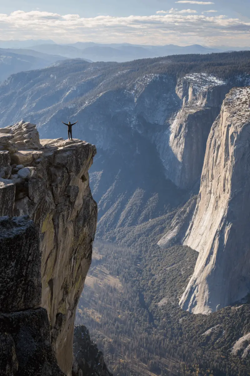 From 8,842 feet above sea level, you’ll see the entire Yosemite Valley spread out like a living map, with waterfalls cascading down distant cliffs and granite domes rising all around you.