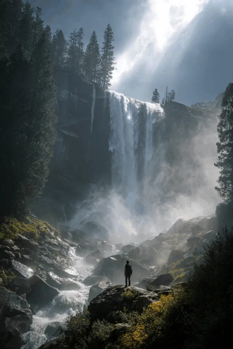 Your journey begins on the Mist Trail, where you’ll feel the spray of Vernal Fall cooling your face as you climb the granite steps carved into the mountainside.